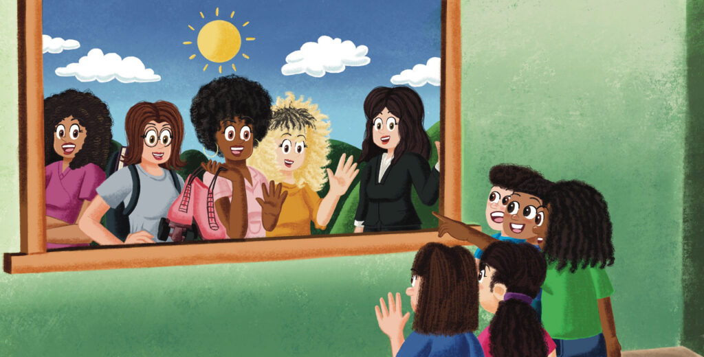 What’s mama doing all day? This book reassures children of mama’s love when they’re apart. Whether fighting dragons or earning credits, all these mamas are out making the world a better place in their own way.